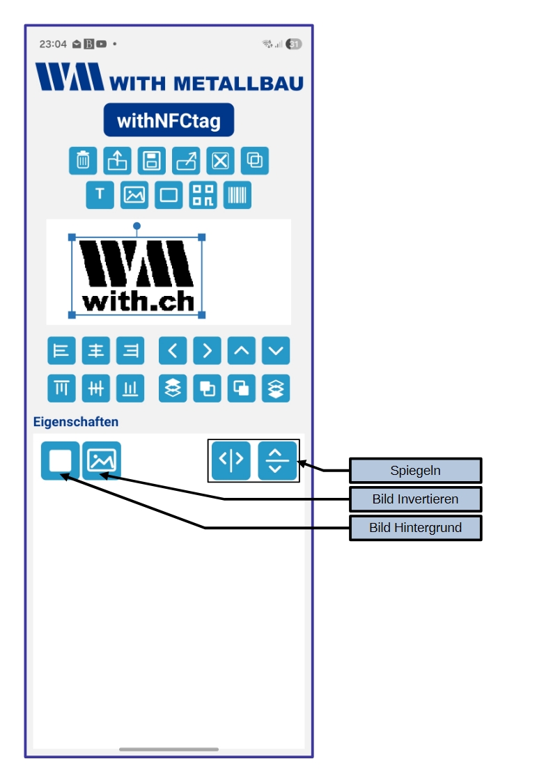 - Klicken Sie auf Senden um das Bild auf dem withNFCtag zu speichern.
