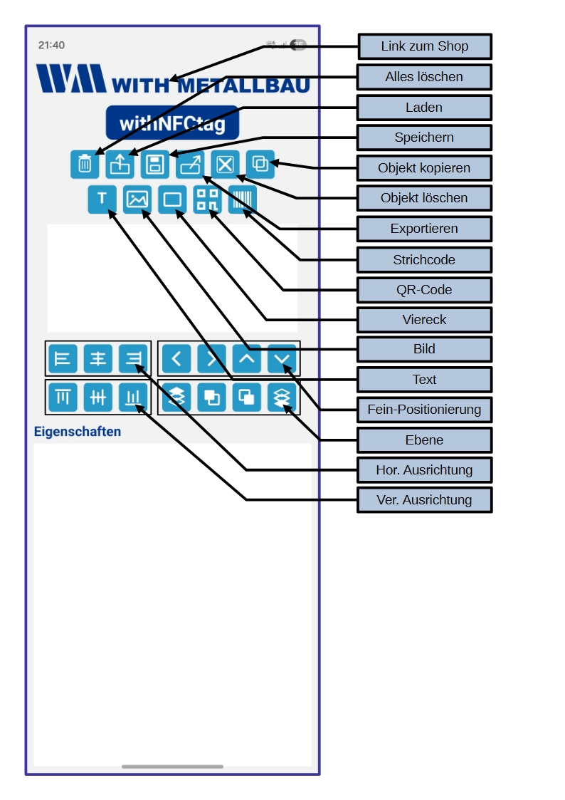 Installieren Sie die App withNFCtag im Playstore für Android-Smartphones und von diesem Link für die Windows-Version.